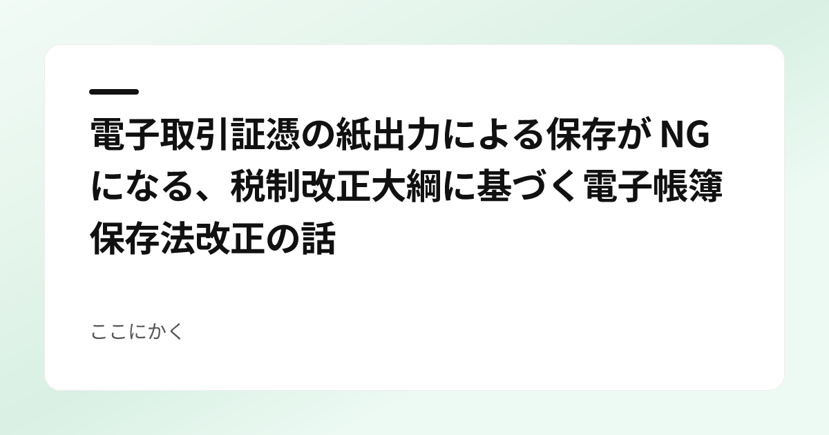 電子取引証憑の紙出力による保存が NG になる、税制改正大綱に基づく電子帳簿保存法改正の話